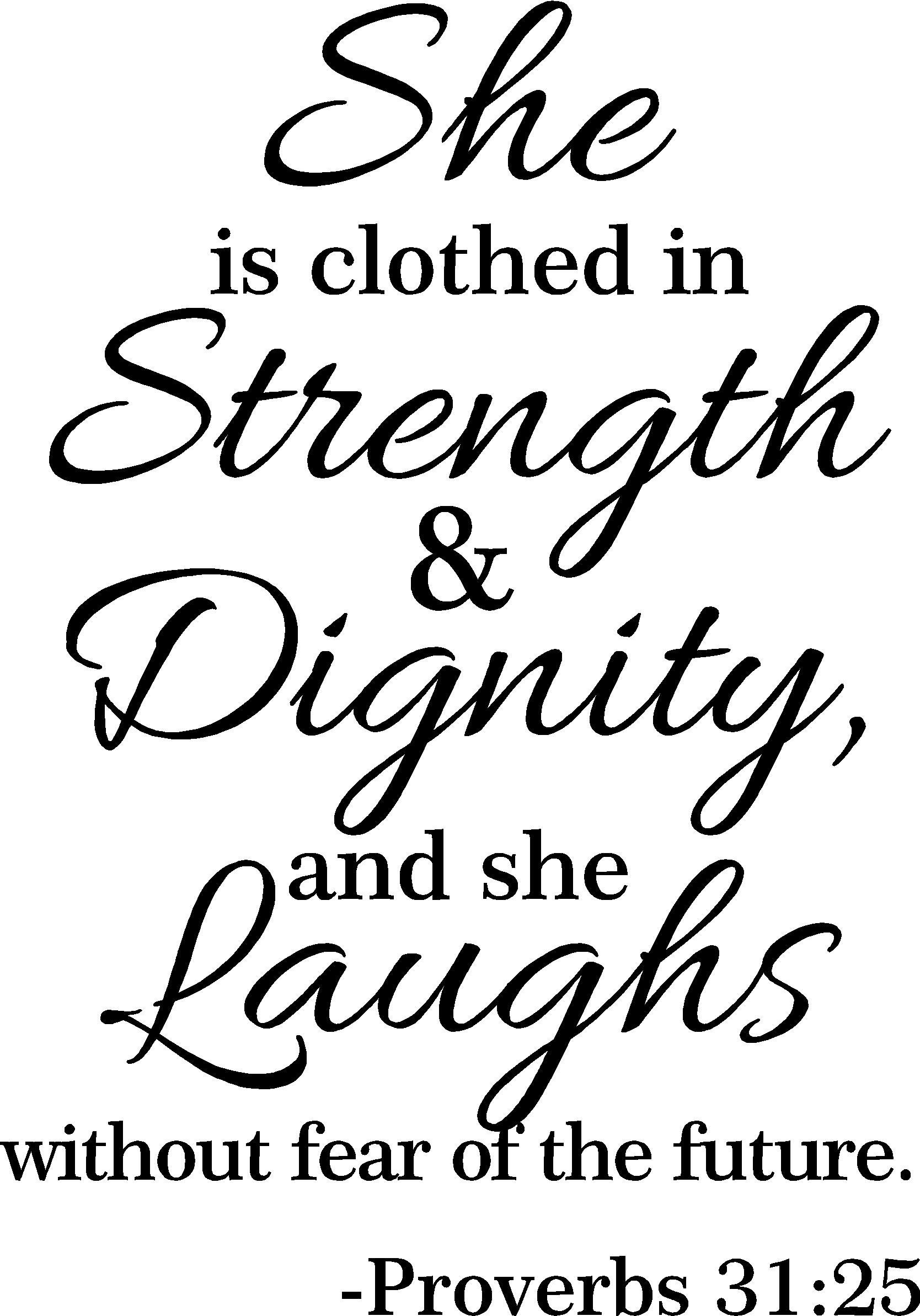 Amazon Com 32 Proverbs 31 25 She Is Clothed In Strength And Dignity And She Laughs Without Fear Of The Future Wall Decal Sticker Scripture Bible Verse Art Mural Christian God Nursery Girl Woman